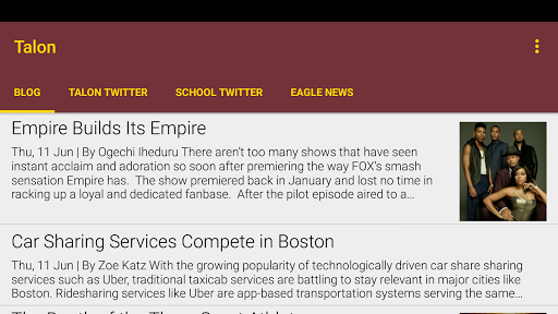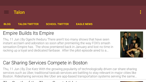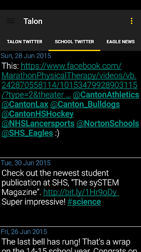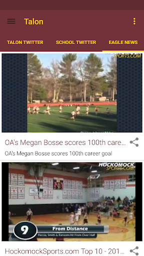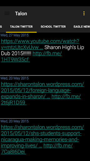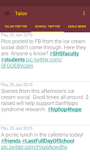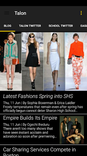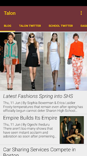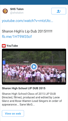 View articles from the student run website more conveniently, as well as messages from the official Twitter feeds of Sharon High School and the Talon. Also view Eagle News!