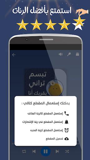 من خلال هذا التطبيق يمكنك تنزيل اغنيه تبسم تراني بدون نت وتستمتع إلى الألحان الدينية في كل مرة يرن فيها هاتفك .