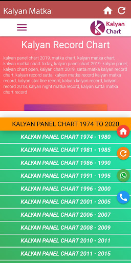 In this app, We have Kalyan chart record data from 1974 to the current date. By this data, anyone can get the idea for guessing kalyan matka game. We can filter the Kalyan panel chart as per year wise so it's easy to navigate Satta Matka panel charts year wise.