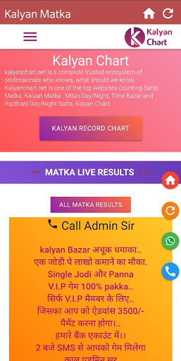 app in satta matka market. Apart from kalyan game we also give free services to other matka market, like Milan Day, Milan Night, Rajdhani Day, Rajdhani night, Main Ratan, Time Bazar, Sridevi and Main Bazar. This app built for free Matka customer who looking free matka tips, organised chart and old chart record.