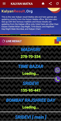 Here live results update directly from the Kalyan Matka office for Kalyan and for others game from their market. By this Kalyan result app, we have a tendency to publish most noted games connected to Matka Bazar.
