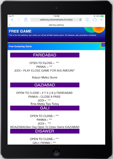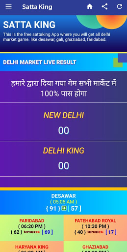 This is the first free satta king ( सट्टा किंग ) app which is the most famous and popular game in India which mostly played in North India and. In India, this game is played mostly in these cities in Haryana, Delhi, U.P, Punjab, and many more cities. Here in this app, we provide all current and previous sattaking results and charts. As per huge demand by free satta king customer we provide free satta king tips, Free game you can find in these market Faridabad, Ghaziabad, Gali, Desawar.