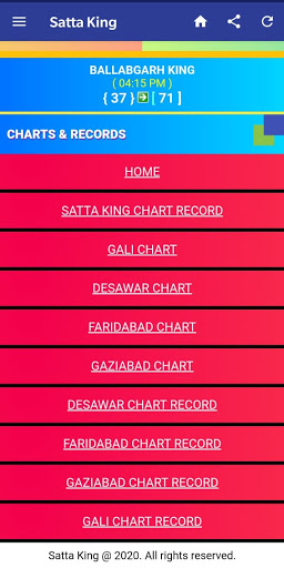By this satta king online app you all can get updated current year live charts for all satta king market games like Gali Chart, Desawar Chart, Faridabad Chart, Ghaziabad Chart.