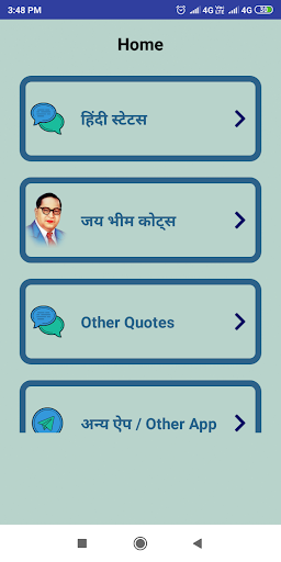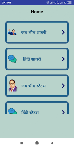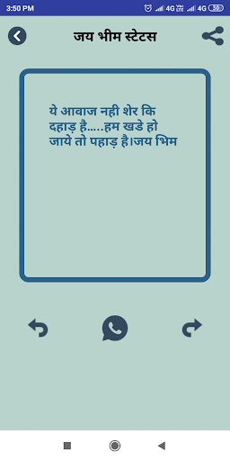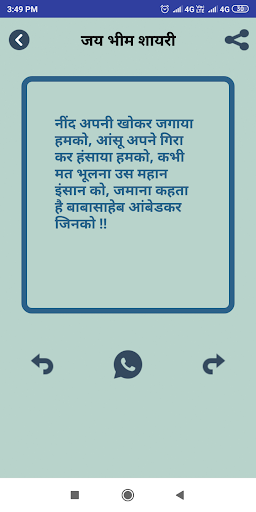 This Application Provides all new Jai Bhim Status Hindi and Jai Bhim shayari Hindi. All Baba Saheb Status and Shayari is Presented in Easy Hindi Language.