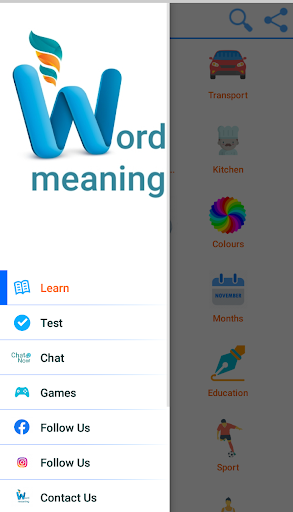 This application Teach you vocabulary with Meaning and Examples and test yourself then you can chat with your friend to learn English