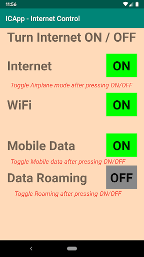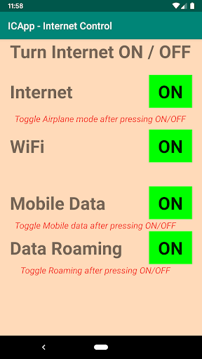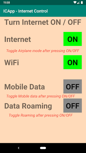 ICApp is an easy to use app to control Internet for less smartphone literate users. The purpose is inspired from Senior people in developing countries who are first time users of smartphone and not so computer literate. They want an easy way to control their Internet - wifi, mobile data and data roaming.