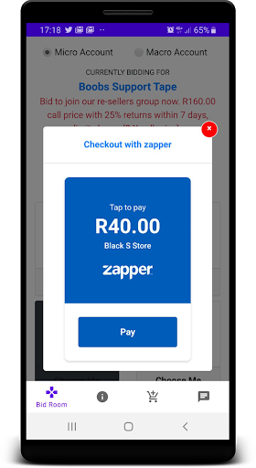 Black S Store is an app that allows you to buy items at low prices, this is carried out when a user joins a bidding room and a user wins the bid, the user can then buy that Item that was on bid at a unit call price not a retail price.