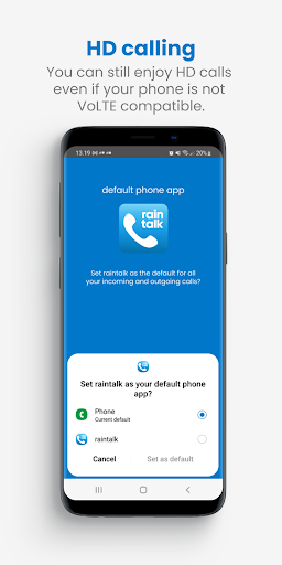 However, If your mobile device is not compatible with VoLTE, you can still access HD calling through raintalk without having to upgrade your smartphone.