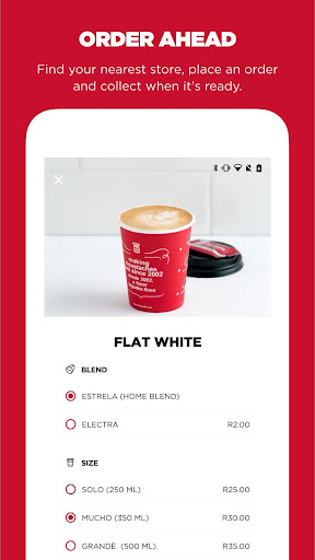 -Pre-order, pay for your beverage and beat the queue. Find a participating store nearest to you, select what you would like to order, choose a pickup time & pay for your purchase using your linked credit card. Track your order once it has been placed.