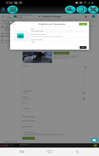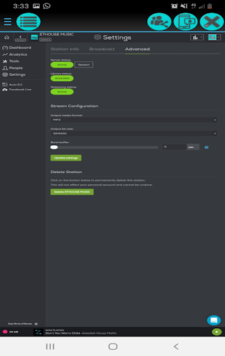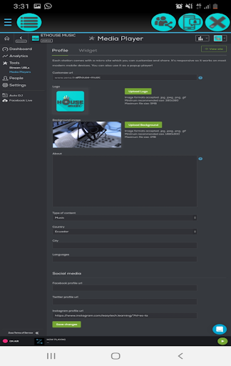 Todo lo que realizas desde tu PC ahora lo puedes realizar desde esta aplicación, puedes acceder a tu panel de control de radio media, ver las personas que están conectadas y crear tus radios personalizadas para subir música.