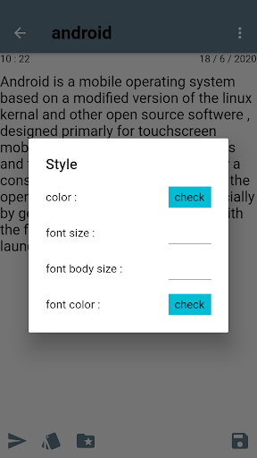 The application is a quick and easy-to-use memo through which you can write your diaries, notes, and thoughts in the colors and sizes that you like, and you can activate the dark system or the normal system and you can change the sizes and colors as you want
