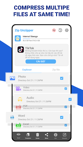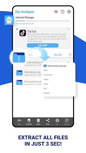 Zip Unzip file: Zip extractor is the best application open Zip files, compress Zip files.