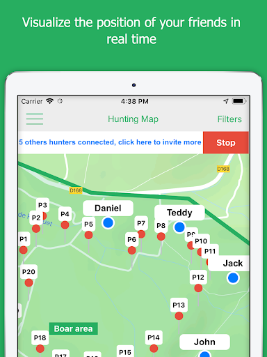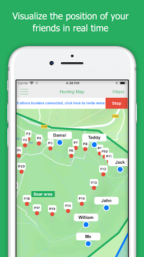 - Visualize in real time your hunting friends gps position on the map