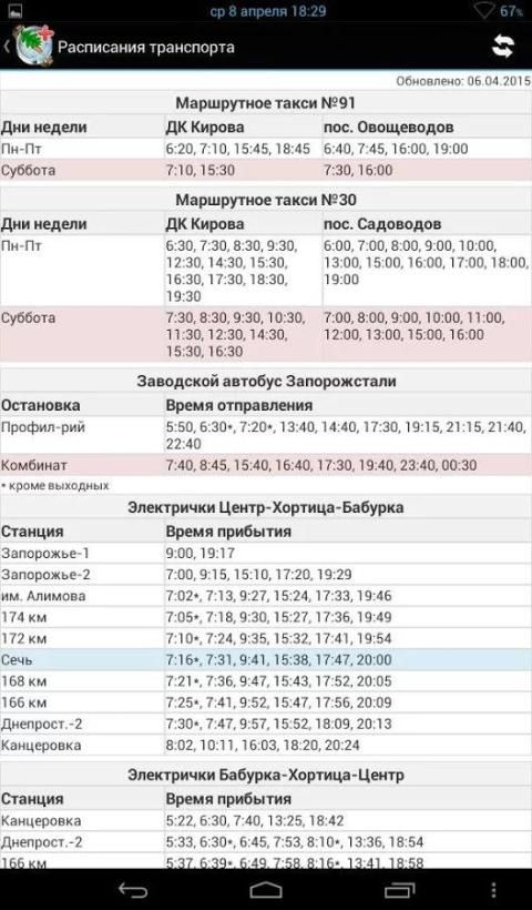 * Actual schedule transport Khortytsya
