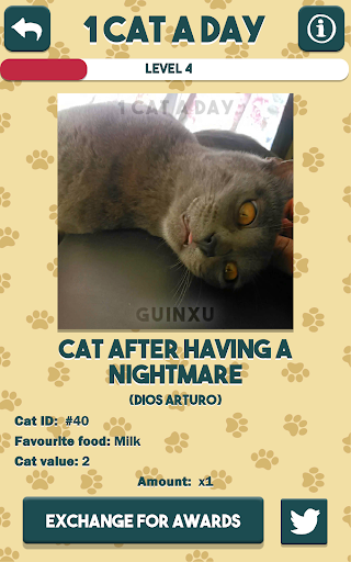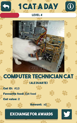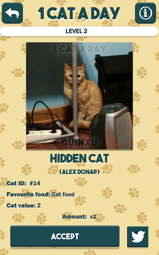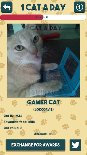 1 Cat a Day is a game developed by Guinxu about completing a collection of fun cat pictures. Cats were sent by Guinxu's YouTube channel subscribers.