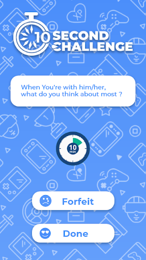 The game has hundreds of questions and you can choose to play the family-friendly mode with general, yet challenging questions and see if your friend can answer them in 10 seconds- or, you can try the adult's mode with more naughty and adult-themed questions. Play with as many friends, family, and couples as you want and take turns asking and answering the questions. One player’s Ability to see the number of rounds to play would ask another the given question in each round and the Sound on/off feature is there in this game. 10 Second Challenge game is Simple and easy to play We are constantly working to improve the app and add more features to it moving forward to make it the best challenge game.