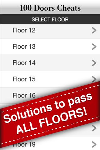 GUIDE FOR ALL DOORS Can39;t get past a level? Is it frustrating the heck out of you?Then this app is for you100 Doors Cheats gives you hints and stepbystep instructions for every level in 100 DoorsSee if you can get past a door with a clever hint and otherwise the clear solution will surely get you there.This app updates when new levels become available in the 100 Doors game. No need to wait for a walkthroughDownload now and cheat your rise to the top