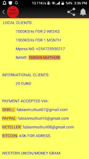 This application is developed to offer 100% fixed matches across all leagues in the world. We have partnered with our source expatriates who have been in soccer for a long time but have retired to issue us with those matches so as to assist our clients. Our urging reason to create this application to be accessed by all gamblers across the world is the fact that many people are in need of fixed matches but they don't know the correct place where they can access. Hope you will enjoy. Thank you