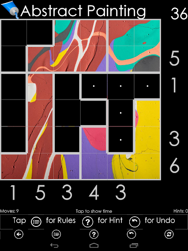 Choose among increasingly difficult and big puzzle levels, save your progress, undo, restart and take advantage of the hints to keep going when stuck.