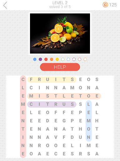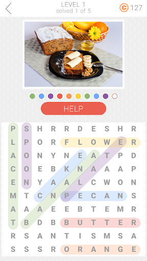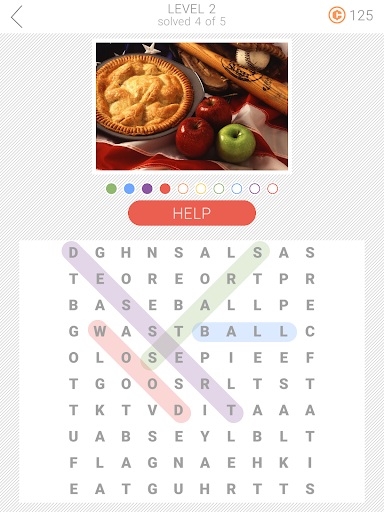 Take a look at the photo, then start searching for the words. You can tap the picture to zoom in for a closer look. Slide your finger through the letter grid to make the word. Use the help button if you get stuck.