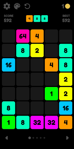 In a checkerboard of limited cells, your mission is to connect at least 2 cells with the same number to create a bigger number. After each round, more random numbers would appear, increasing the difficulty of game.