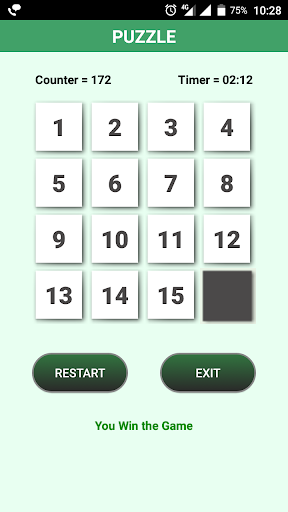 The 15 puzzle is a old classic game, you can sliding puzzle that consists of a frame of numbered square tiles in random order with one tile missing. The object of the puzzle is to place the tiles in order by making sliding moves that use the empty space.