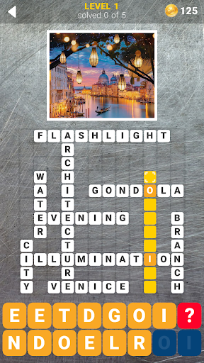 Each crossword contains words that are associated with the photo above it. Guess the words and solve all levels! Tap the picture to zoom in for a closer look. Some answers are obvious, others are quite tricky. This game is an excellent exercise for your brain!