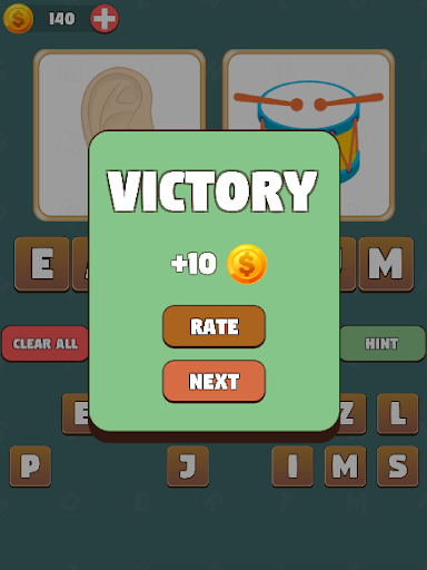 Depending on two photos and you have to figure out the last word for those photos to pass a level.