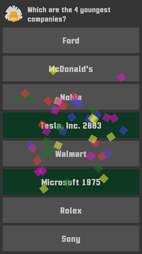 Each player chooses after each other either the oldest or earliest dates of an given topic. Topics: Movies, Books, Videogames, Inventions, Birthdays of famous people, Company foundation, Cars, Football/Basketball clubs.