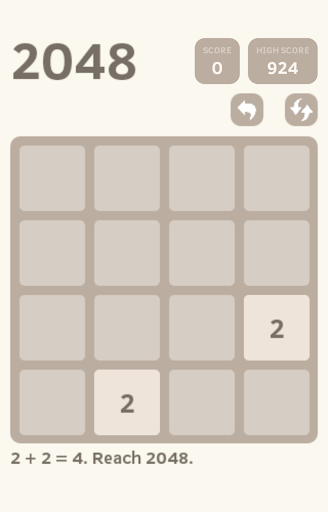 2048 is played by swiping the tiles to merge matching numbers. If two tiles of the same number collide while moving, they will merge into a tile with the total value of the two tiles that collided. Every turn, a new tile will appear with a value of either 2 or 4.