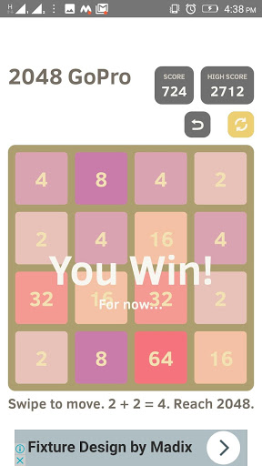 2048 Go Pro is an updated game which can be run in latest versions. Be ready for a new challenges every game!