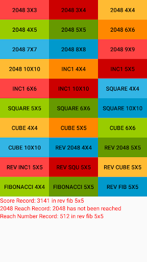 • Multiple 2048 games modes: classic mode, ,increment 1, cube square, Fibonacci mode, reverse increment, reverse classic, reverse cube, reverse Fibonacci.