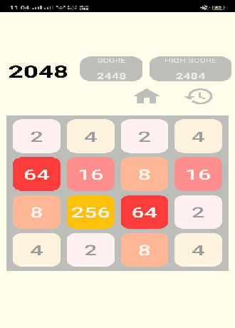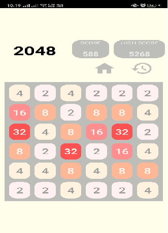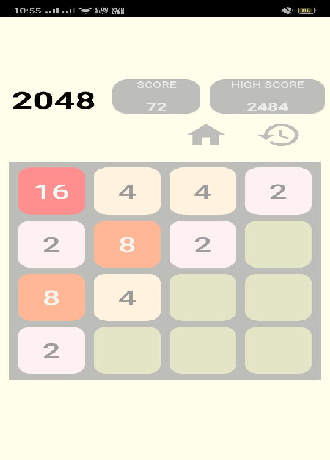 Swipe the screen to move tiles left, right, up, and down. When two tiles with the same number touch, they merge into one! Every swipe, a new tile will randomly appear in an empty spot on the board with a value of either 2 or 4. Slide the tiles to merge them, 2 2→4, 8 8→16 ...32 ...256 ...1024...,