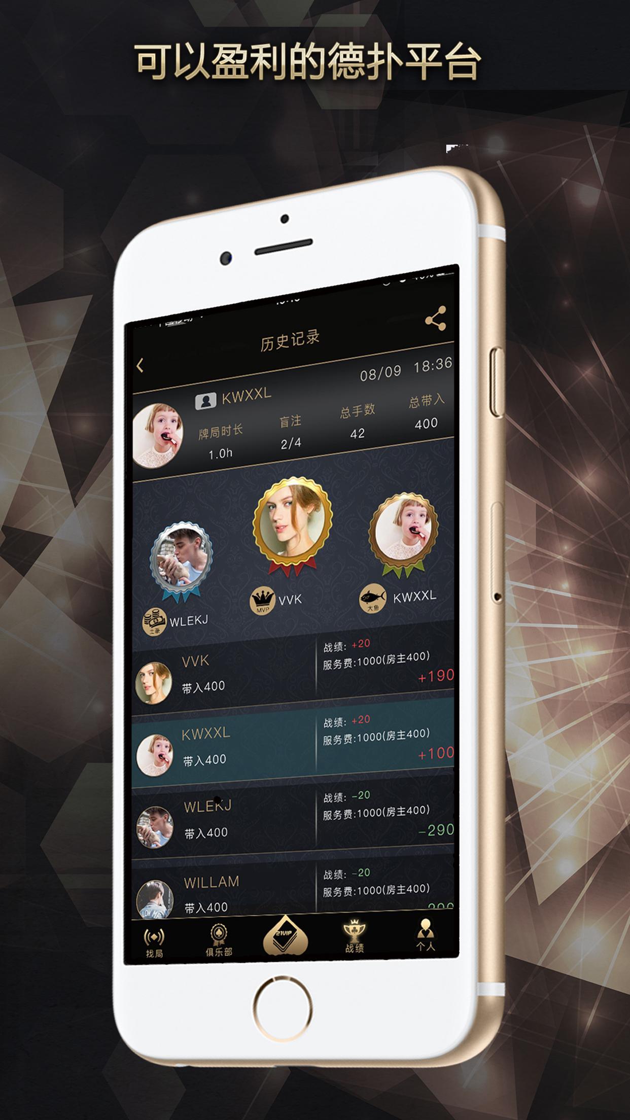 - 创建自己的自己的德扑俱乐部,邀请全球高手加入,也可以吸引同城德扑玩家。