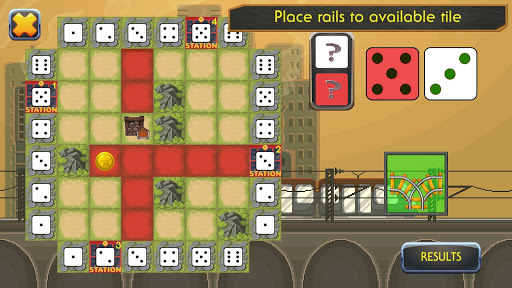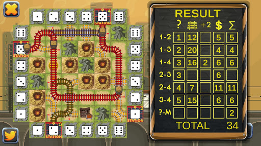 The idea of this board game is pretty simple. You have the field on your screen, which can remind you of a solitaire game, but here is the difference: instead of bombs, there are 5 mountains that you will randomly lay on your board. Every time you roll the dice and get a piece of the puzzle, certain tiles on your screen change colors to dark red to show you where to build the part of the road this time. You will have plenty of railroad crossings and the main task is to create long chains that will connect train stations on the different sides of the board with a mine. Everything will be drawn automatically, unlike it is done when you play a pencil and paper game. All you have to do is, using the tip of your finger, place the parts of the blocks to the right area due to your own strategy. All railroad stations have to be connected with each other and each of them must have an extra route to the coal mine. You’d better remember that each station has its own value and the longer the track the more points you will get.
