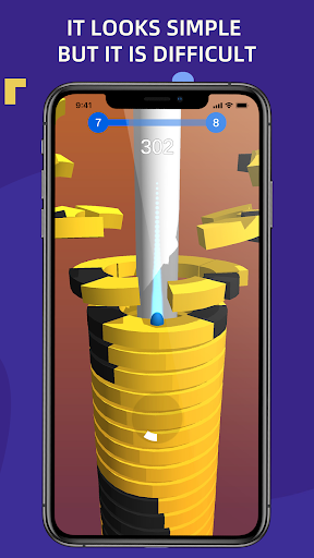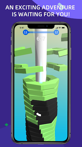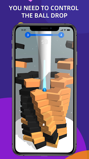 Players click on the screen to rotate the spiral platform until it reaches the bottom of the tower. The bouncing, until the bouncing bricks have smashed through the colorful platform, but pay attention to hit the black one, or the game will end!
