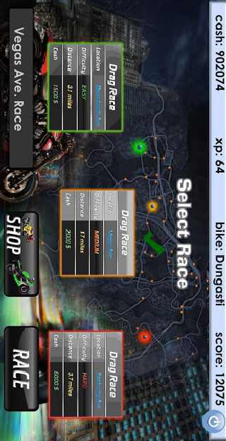 Win each race and raise money to upgrade your ride, choose the bike you want and tune to get even faster. There are not limits set for you, you are in charge with the control f the drag race. All you need to do is to stay tuned and shift gears at the right moment to set your bike on fire.