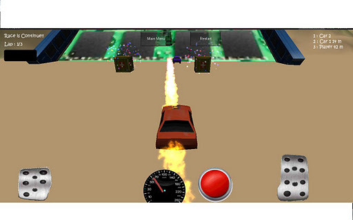 ENGLISHThis is soo funny 3 CAR RACING free game...Game contains 3D graphics, car , racing , land , boxes and more..You try to beat other cars and try to win..There is 5 different level for racing and beat other cars...There is NOS nitro for increase your speed..You control your car tilt sensor and pedals which shown on screen.Right pedal for speed up and getting jump higher...Left pedal for slow down and go back..There is left top of screen pic for show how much you have nos..You can control your speed at speedometer and it is scaled for all of screen size.. Tablets , large screens , medium screens and little screensThis game for all android device which contains arm7 processor...There is some problem for sort cars..There can will be a mistakeLEVEL 1 : Contains some basic jumping and driving quickly...There is some nos boxes and you can increase your nitro and off course your speed..Terrain is large you must do 3 laps for win..LEVEL 2 : you will be in desert and there is no grass and other ..Also you want to get nos boxes and reach finish flagYou will see RAM in your way...Ram is just like walls..Do not hit them..You must follow true way to reach finish quicklyLEVEL 3 : Snow and interesting object..This game level contains montains and off course snows..You will see interesting object and do not try to hit them..LEVEL 4 : Are you hungry ?Game level contain knife and fork..They are too big and they can eat you..Dont try to hit them and you can go between them..LEVEL 5 : Finally we arrived city and good human lives..Are you tired to natural life...Off course you are..Now time to go city and more relax...City is qute and there is RAM walls..There is a silicon vally...When you hit RAM s you will broke them..This is beta version...I will add new levels and features..TRKEBu oyun 3 boyutlu Araba Yar oyunudur...Bu oyunda 3 boyutlu grafikler , araba , kutular , yar pisti ve daha fazlas var..Oyunda dier arabalar yenmeye ve kazanmaya alyorsunuz..Ayrca hznz artrmak iin oyuna NOS nitro da ekledim..Arabay kontrol etmek iin sensr kullanyosunuz..Sa pedal , gaz pedal ve gaza basarak hzlanyorusnuzSol pedal fren pedal ve yavalayp geriye gitmeye yaryo..Sol st kede kalan nos miktarn gstermesi iin gsterge resmi koydum..Oyunda ayrca hznz grmek iin alt orta ksma hzler aklma gelmedi ad :D koydum..Bu grafikler ilemcisi arm7 veya st her trl cihaz iin ayarlanmtr..Tablet bilgisayarlar , telefonlar iindirOyunda sralamada sorun var..Daha sonra dzelteye alcam..LEVEL 1 : Basit zplamalar ve hzlanmalar varHznz ani olarak artrmak ve daha hzl gidip daha ileriye umak iin Nitro kutular var..LEVEL 2 : Bu blm lde geiyo..Bu blmde bitki yok..Dier blmlerde olduu gibi nos kutularn almaya alyosunuz ve finish e varmaya..LEVEL 3 : Kar ve acayip nesneler varBu blmde dalar ve dalarn ucunda karlar varBlmde acayip objeler var ve onlara arpmadan iinden veya evresinden geinLEVEL 4 : Acktnz m ??Oyunda atal ve bak var..ok bykler dikkat edin de size zarar vermesin..atal baka arpp onlar devirmeye almayn..LEVEL 5 : Sonunda ehre geldik ve mutluyuzDoa hayatndan yoruldunuz mu ?? Tabii ki yoruldunuzimdi ehir hayatnda dinlenme vakti...RAM lere arptnzda bozuluyo ve ate karyoBu oyunun beta versiyonudur..Yeni leveller ve zellikler ekliyeceim..
