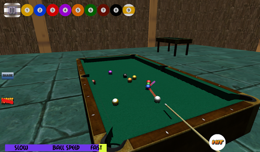 This is a free 3d billiards sport game with smooth controls and 360 degrees point of view.
