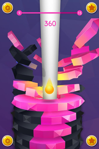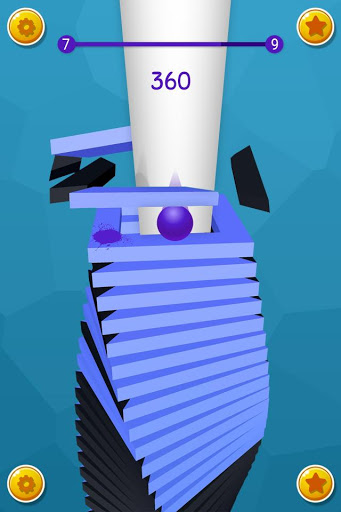 Your ball smashes like a brick through colorfull platforms that block its descent, but if you hit a black one, it's all over! Your ball shatters to pieces and you have to start your fall all over again.