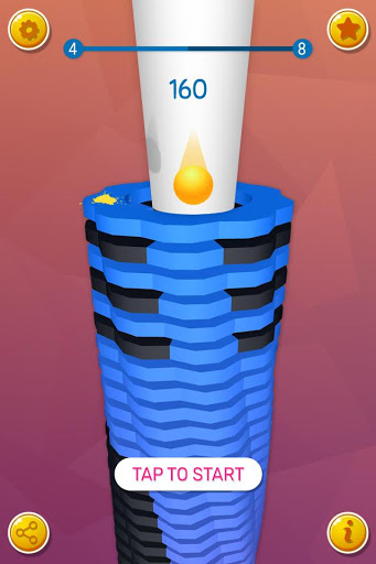 Press and hold on the screen and let the ball go down without touching the obstacles! Hold as long as possible to make combo and break the black blocks. Let the ball fall down from the helix stacks.