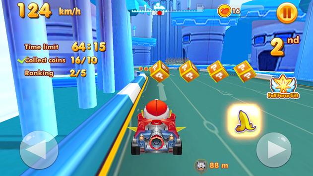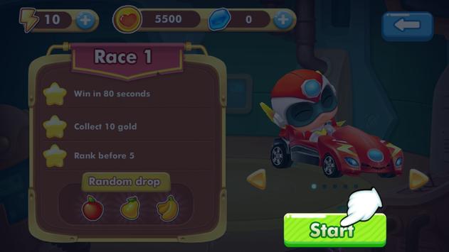 Choose your favourite character and beat them all. Collect a lot of coin so you can upgrade your car to make more faster.