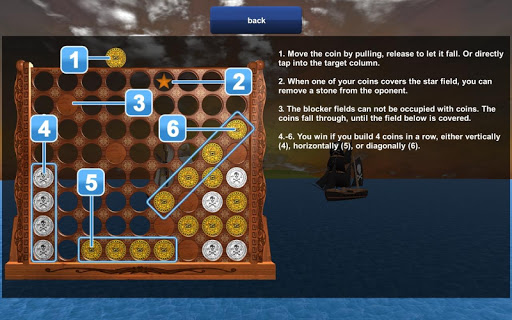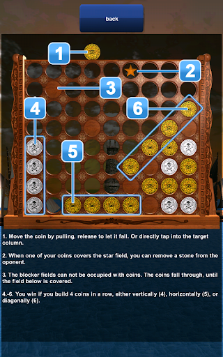3) You can play with a star field in one of the upper rows. When a player reaches the star, he can remove a coin of the opponent. This gives the gameplay even more action.