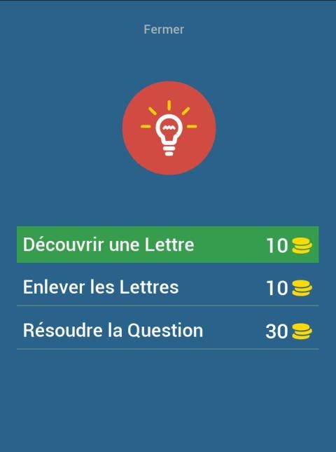 si la réponse est vrai , le niveau suivent s’affichent , si faux tu peux passe le niveau par des coins gratuits