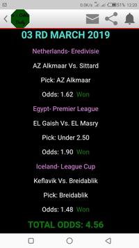 This Application is developed to provide you with the most refined and well-analysed games. It provides you with 4 odds for HTFT matches, UNDER and OVER 2.50 and correct score. This is the home of winners