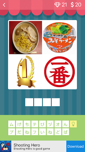 → Each picture describes one word and the combination of 4 pictures is a new word which has a translation in Japanese.