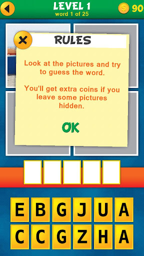 This addictive word puzzle game comes with a twist: the pictures are revealed one by one. Guess the word with less pics open and earn extra coins!