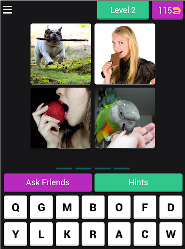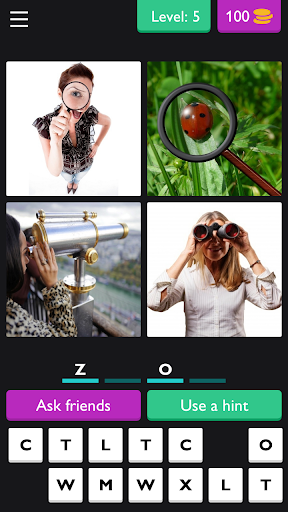 โ In the screen you can see 4 Images in common; you have to answer the 4 letter word.