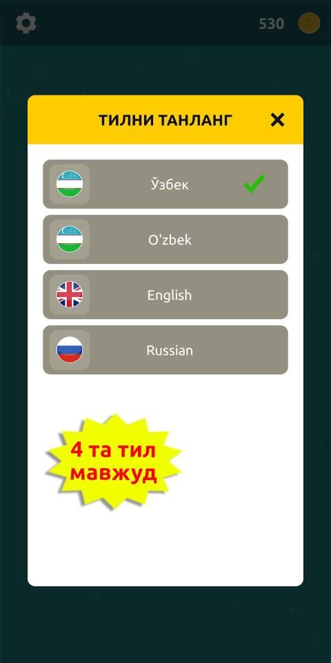 ★Танга эвазига билмаган ҳарфларингизни очишингиз мумкин ёки ортиқча ҳарфларни олиб ташлашингиз мумкин.
