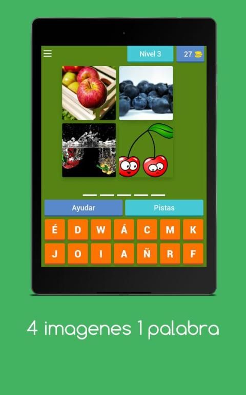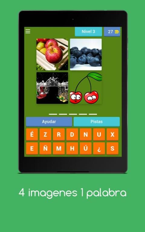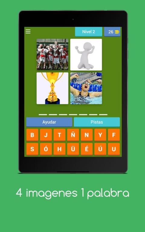 The rules are very simple: Veras 4 photos and you have to guess the word indicating. So, watch the pictures and guess the word. Start with a simple level and it becomes complicated. If you get stuck, do not worry, use the track "Delete unnecessary letters", "Insert the correct letter" or "Salta level."